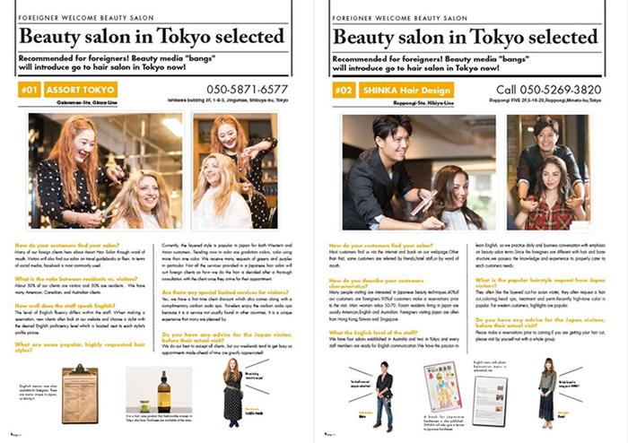 USEN Mediaが運営している『bangs(バングス)』は、スタイリスト(美容師)にフォーカスした新しいメディアです。得意なスタイルや施術など、都内人気エリアのトップスタイリスト1000人以上の情報をWEBサイトとフリーマガジンのクロスメディアで展開しています。現在はインバウンド対応にも力を入れており、英語、中国語、韓国語を話せるスタッフがいるサロンをエリア別に掲載。今後も東京にある外国人ウェルカムな美容サロンを数多く紹介していきます。