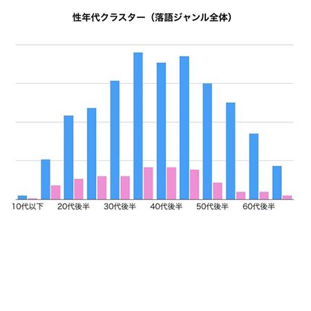 一般的に落語を好むのは年配の方、というイメージが強いですが、U-NEXTの落語ジャンルの視聴者クラスターは一般のそれとは多少異なります。(対象期間:2016年以降)。