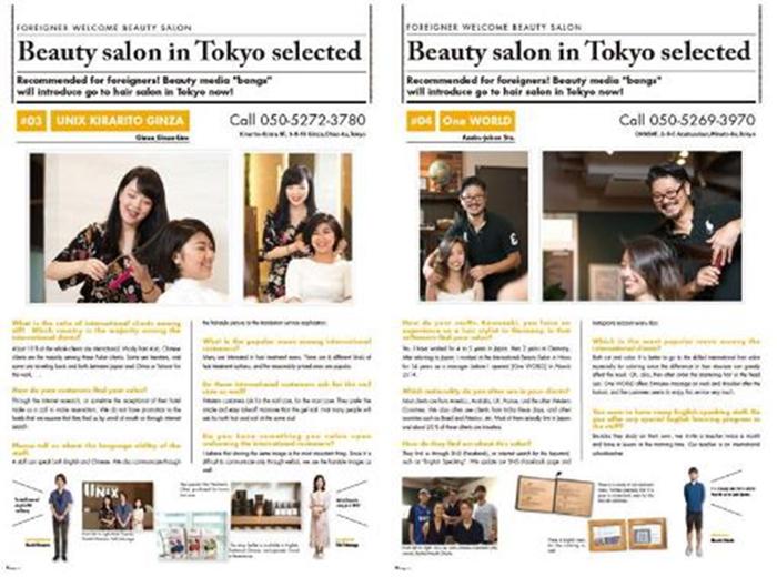 USEN Mediaが運営している『bangs(バングス)』は、スタイリスト(美容師)にフォーカスした新しいメディアです。得意なスタイルや施術など、都内人気エリアのトップスタイリスト1000人以上の情報をWEBサイトとフリーマガジンのクロスメディアで展開しています。現在はインバウンド対応にも力を入れており、英語、中国語、韓国語を話せるスタッフがいるサロンをエリア別に掲載。今後も東京にある外国人ウェルカムな美容サロンを数多く紹介していきます。