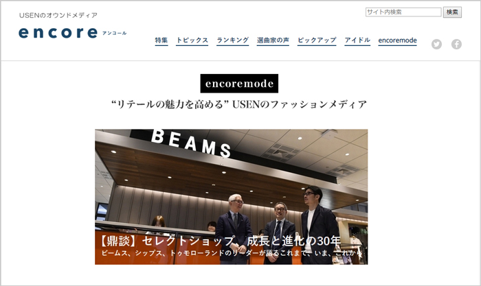 USEN-NEXT GROUPの株式会社 USEN(本社:東京都品川区、代表取締役社長:田村公正)は、音楽とカルチャーを中心としたエンタテインメントウェブマガジン「encore(アンコール)」に新たなカテゴリーとして、リテールの魅力を高めるファッションメディア「encoremode(アンコールモード)」をリリースしました。