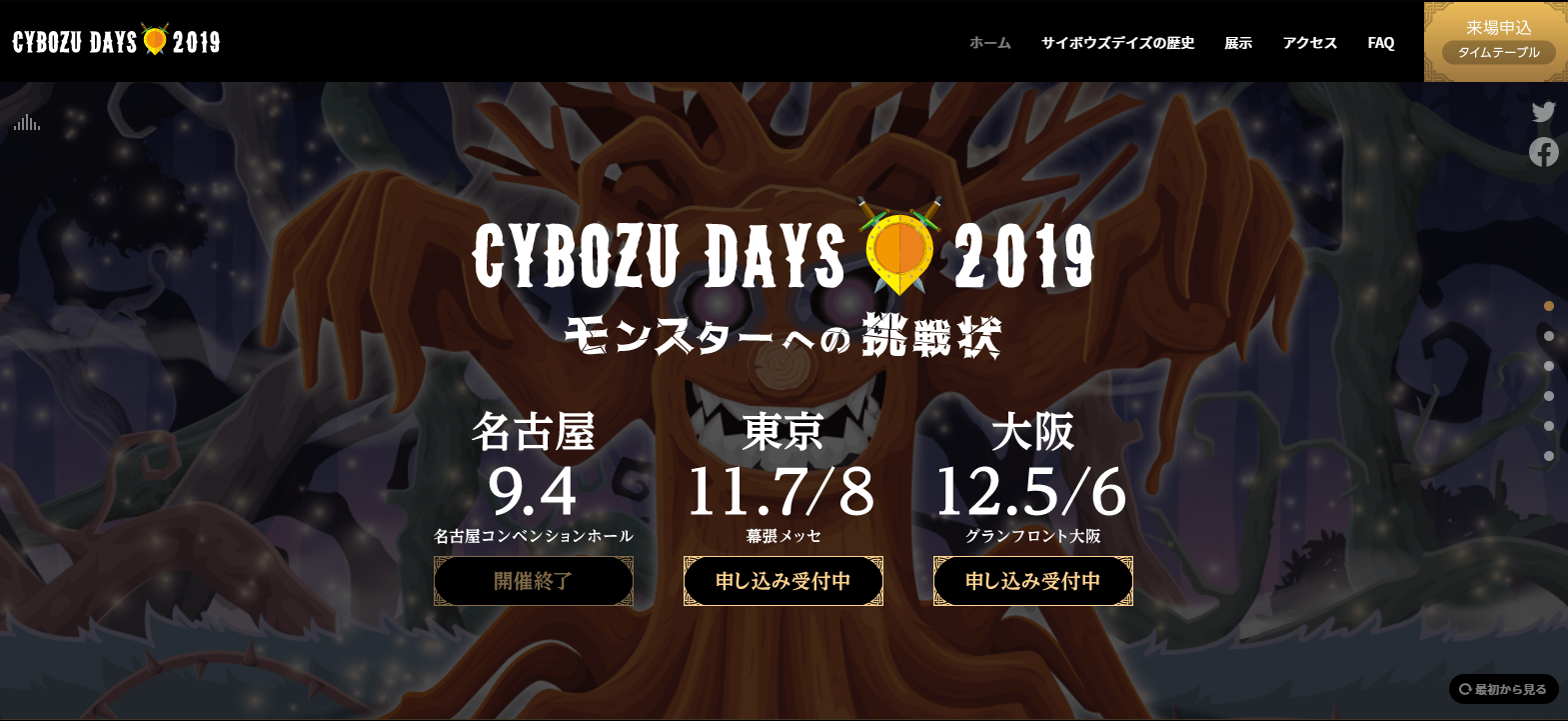「サイボウズデイズ2019」は、サイボウズ株式会社(本社:東京都中央区、代表取締役社長:青野 慶久)が主催する、クラウドサービスを活用したチームビルディングなどに関するさまざまなセッションを集めた展示会です。2019年は「モンスターへの挑戦状」という総合テーマのもと、働き方改革やチームワーク向上のための様々なセッションが展開されます。