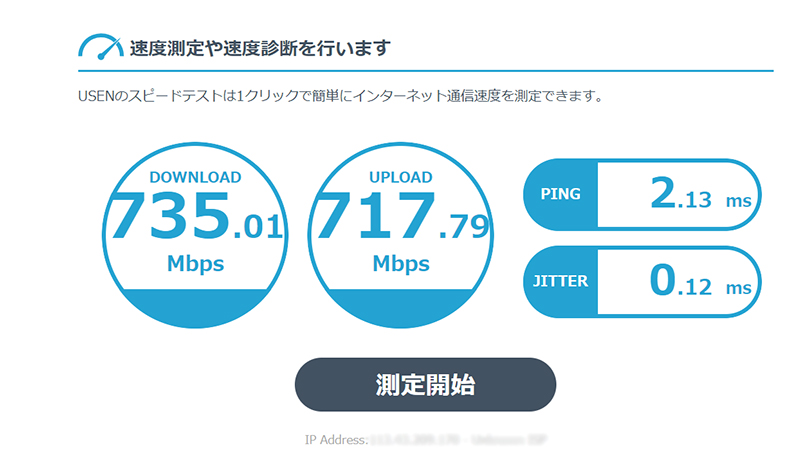 ※USEN GATE 02 プレミアインターネット(1Gbps)で測定した結果です。