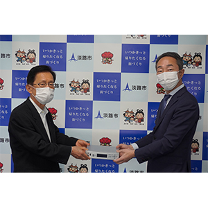 このプロジェクトは、希望する施設に、USENが放送受信機器を無償で設置(8月末まで)し、新型コロナウイルス感染拡大の防止・予防のメッセージを流すことにより、市民らに注意喚起を呼びかけることを目的としています。今回の淡路市への設置にあたり、贈呈式を開催しました。