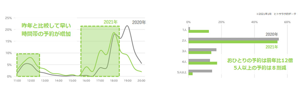予約データに見る消費者行動の変化。予約時間の前倒し・分散化が進み、おひとりさま予約は前年同月比12倍以上に拡大