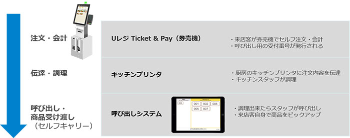 ◆注文・会計/受付番号発行:『Uレジ Ticket & Pay』の券売機運用により注文から会計までセルフで完結