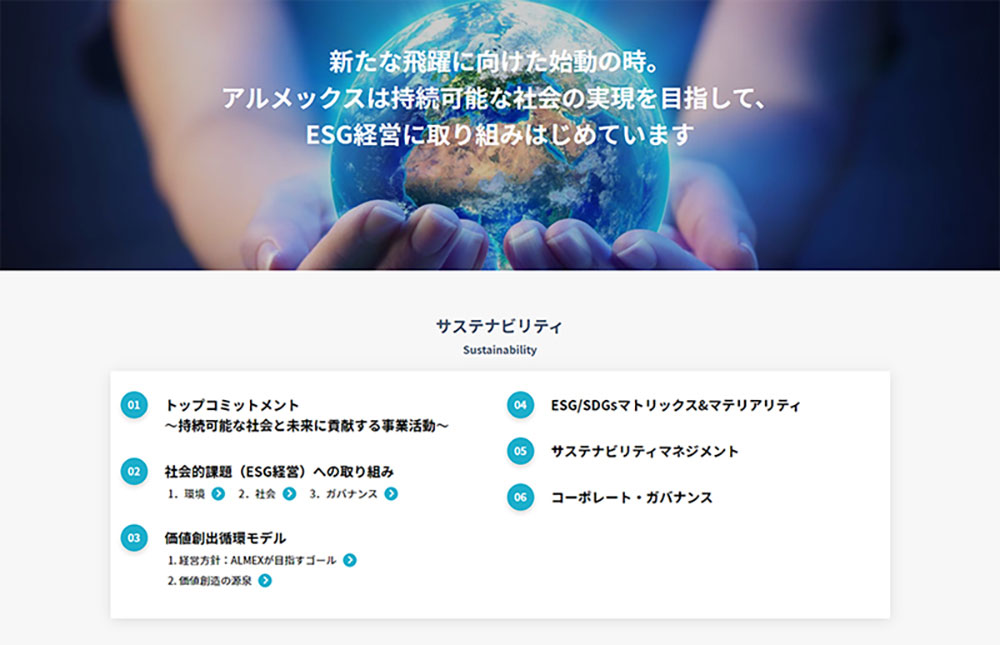 USEN-NEXT GROUPの株式会社アルメックス(本社:東京都品川区、代表取締役社長:馬淵 将平)は、持続可能な社会の実現に貢献する企業であり続けるために、ESG経営に関する方針を定め、その取り組みをはじめました。