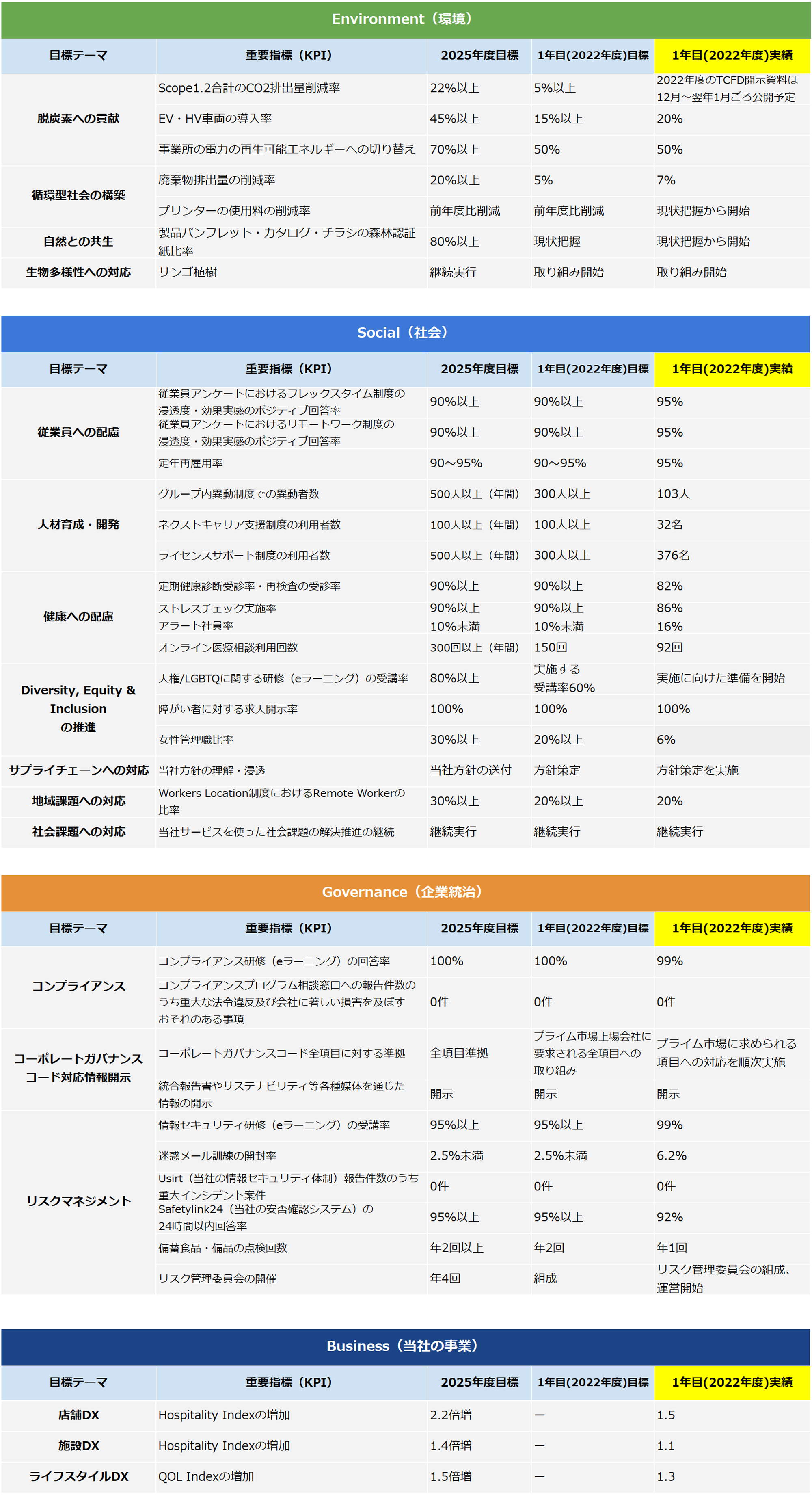 サステナビリティの重要指標(KPI)初年度実績を開示