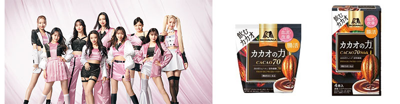 このたび、「USEN-NEXT I‘moon」が出演するWEB動画「ダンス」篇では、「血流改善(末梢の血流を改善し手先表面をあたたかく保つ)」「腸活(カカオリグニンが、便通が気になる方のおなかの調子を整える)」のダブルヘルスクレームの機能性表示食品としてリニューアルした「カカオの力<CACAO70>」を、ココアのホッとするだけではない、機能の力強さを彼女たちのシンクロしたダンス動画でパワフルに表現しています。