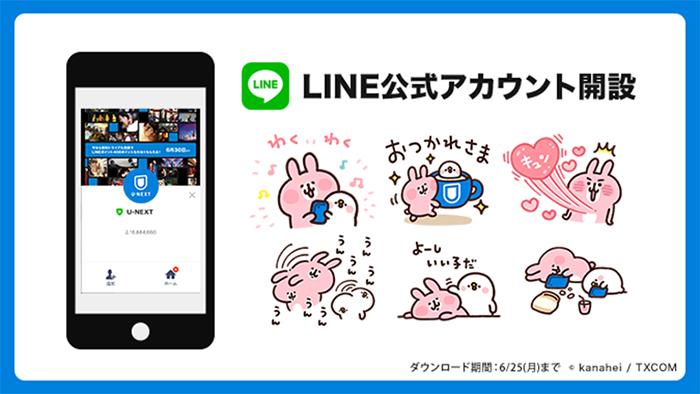 USEN-NEXT GROUPの株式会社 U-NEXT(本社:東京都渋谷区、代表取締役社長:堤 天心)は、本日5月29日、LINE株式会社が提供するコミュニケーションアプリ「LINE」の公式アカウントを開設いたしました。これを記念して、人気クリエイター・カナヘイの「ピスケ&うさぎ」とU-NEXTのコラボLINEスタンプを期間限定で無料配信いたします。