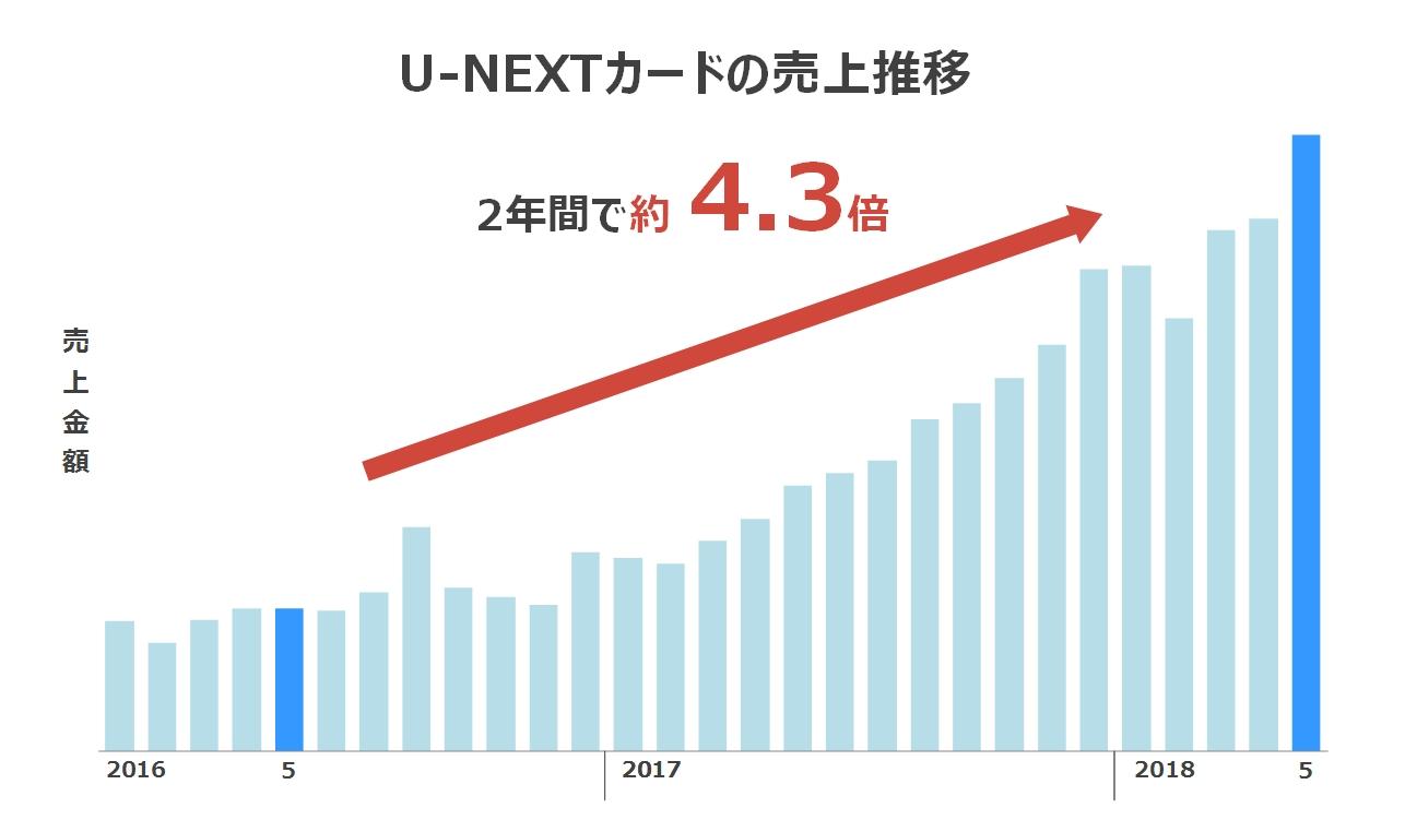 2014年の発売開始以来、「U-NEXTカード」はクレジットカードを持たない“非クレカ派”のニーズに応えて販売数を伸ばしてきました(下参照)。