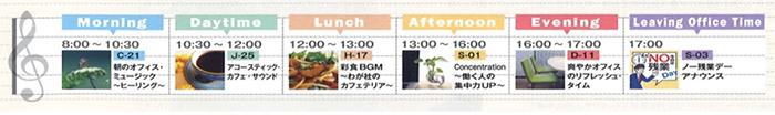 音楽の4つの機能「集中力向上」や「リラックス」、「リフレッシュ」、「気づき」など心身面に与えるポジティブな影響をプログラムに盛り込むため産業医や精神科医の監修のもとオリジナル番組なども用意している。
