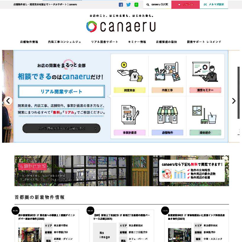 当社が運営する店舗の開業をお考えの方や店舗経営者の方のサポートを目的とした無料の情報サイト『canaeru(カナエル)』*では、2018年9月よりコンテンツを順次、追加・実装いたします。
