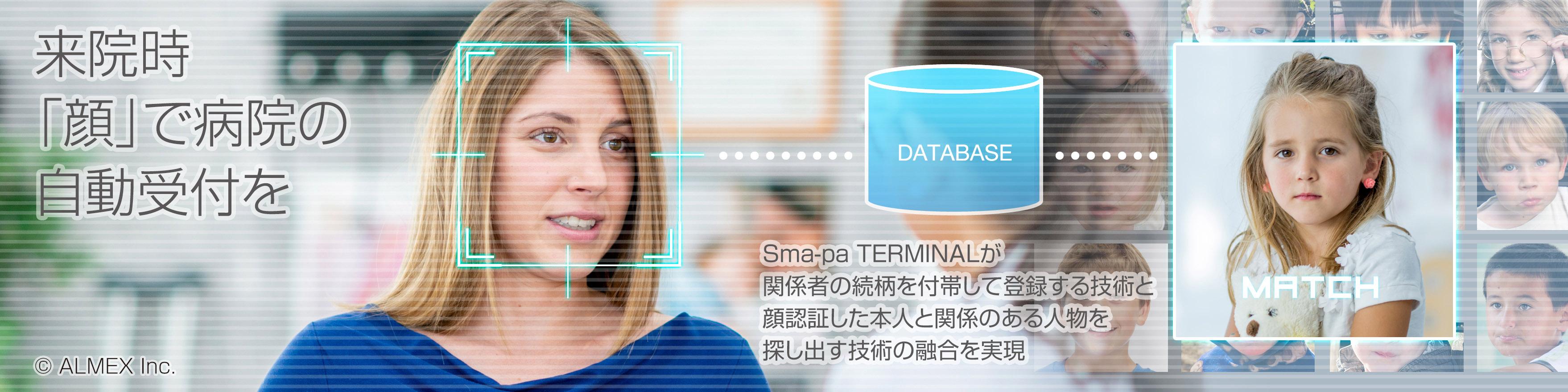 2019年2月18日(月)より発売するキオスク『Sma-pa TERMINAL』は、診察の受付から支払いまでの機能が一体となった次世代受付機となります。今回搭載している顔認証にはAIが採用されており、受付・精算や保険証の自動確認、同時にサーマルカメラによる発熱検知と連動させることが可能になります。加えて、特許申請中となっている複数関係者の顔認証技術も搭載予定となります。