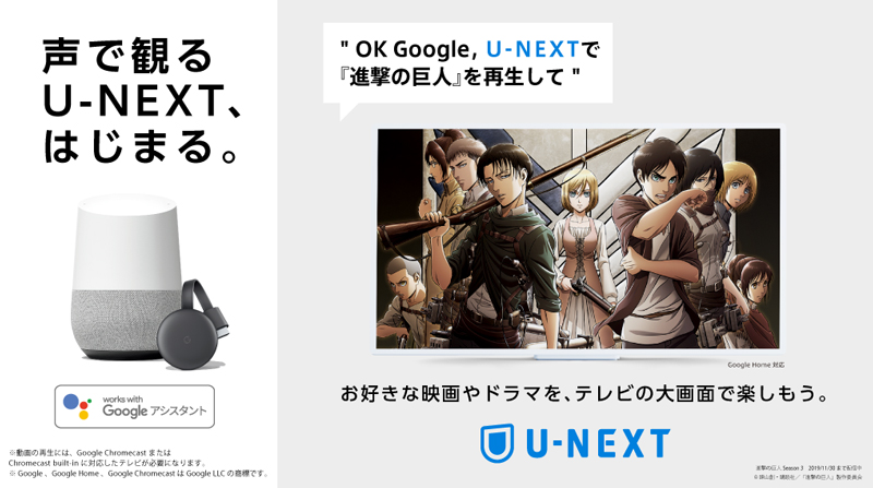 「OK Google, U-NEXTで『進撃の巨人』を再生して」