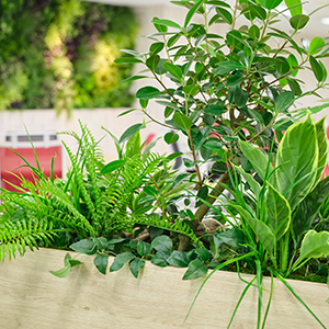 アレンジメントやグリーンウォールでお客様をお出迎え