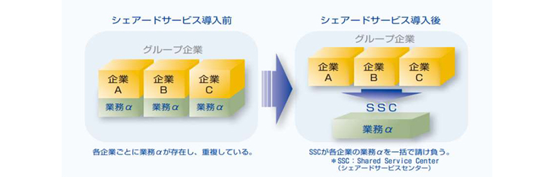 ※シェアードサービスとは、複数の企業・組織で実施している共通業務を集約させ、サービスを提供する企業変革を指す。グループ経営強化のために、各社に存在する間接業務を切り離してシェアードサービスセンターに集約することで、業務の効率化を図るとともに、知識や能力を蓄積させる手法。