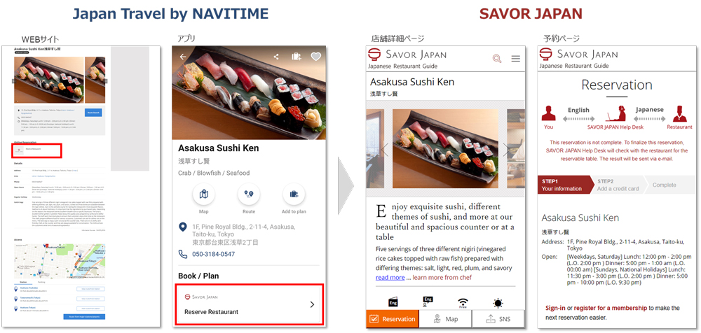 『Japan Travel by NAVITIME』、『SAVOR JAPAN』と飲食店予約で連携 訪日外国人向け、レストランのオンライン予約を可能に