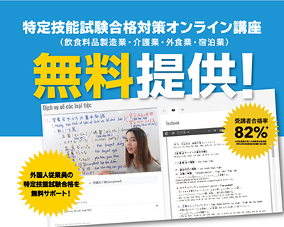 コロナ禍で一時中断していた国内での特定技能試験が再開されたことを受け、両社は「飲食料品製造業」、「介護業」、「外食業」、「宿泊業」にて就労する外国人の特定技能ビザへの転換ニーズに応えるため、『特定技能試験合格対策オンライン講座』の提供を、本日7月10日より開始します。