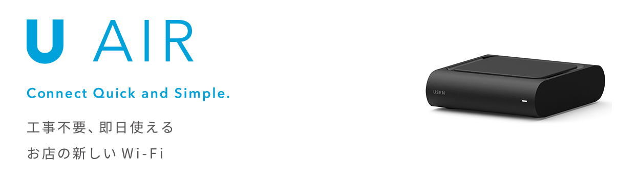 店舗運営に必須となる業務用Wi-Fi『U AIR』、AI BGM『U MUSIC』、来店客属性分析ができるAIカメラ『U EYES』を無線通信と業務機器をIoT化した最新テクノロジーをもとに、ワンストップでご提供します。