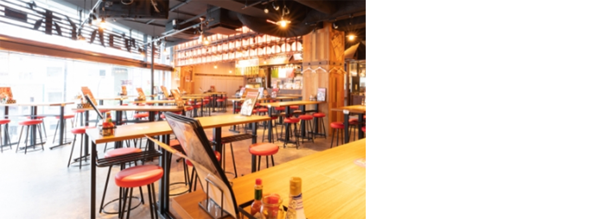時間帯によって変化するお客様の層に合わせてAIがBGMプログラムを自動変更。「おしゃれな昭和」をイメージした