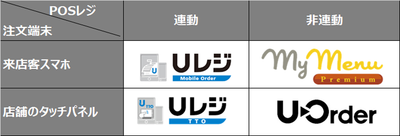 今回の『USEN My Menu Premium』のリリースによって、注文端末やレジ連動・非連動別に4つのタイプからセルフオーダーシステムをセレクトいただくことが可能となります。これまで既存のレジの買い替えがネックとなり、モバイルオーダーシステムの導入を見送っていた飲食店も、ご利用中のレジはそのままに、モバイルオーダーシステムを導入できることになりました。