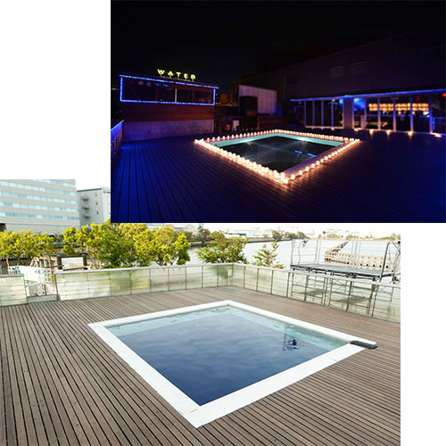 背景には海が広がり、心地よい風が吹く開放的な屋外プールエリア。屋内とは違った大人のオアシス空間で、他ではできない特別なライブを開催することができます。