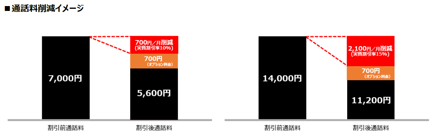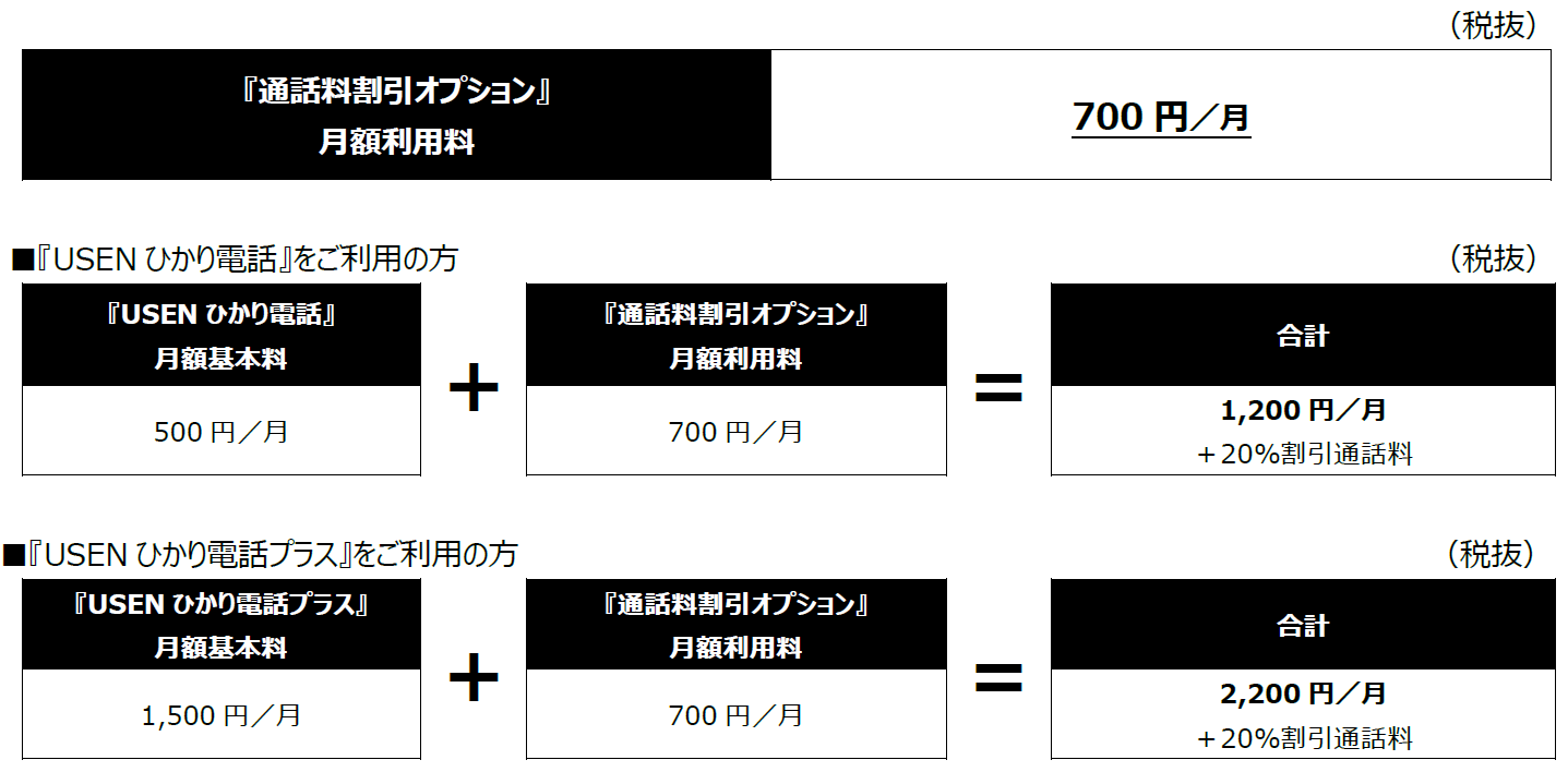 『USENひかり電話』、『USENひかり電話プラス』に付帯することにより、毎月の通話料金を一律20%割引くオプションサービスとなります。