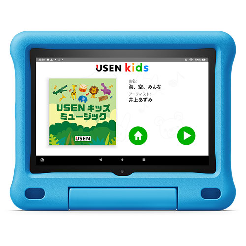 『USEN Kids』は、「こどもの成長を見守り、一年中楽しめる音楽アプリ!」をコンセプトにAmazon Kids+向けに開発した、こども向けコンテンツを提供する音楽アプリで、AmazonのFireタブレットシリーズでご利用いただけます(Amazon Kids+の会員登録が必要です)。なお、Amazonのキッズ向けタブレット「Fireキッズモデル」なら、Amazon Kids+が1年間使い放題なので、「USEN kids」を思う存分お楽しみいただけます。誰もが知るヒットソングから、家族の食事の時間を楽しくするビストロミュージックや、寝かしつけのための「羊の数」などのUSENオリジナル楽曲まで、様々なジャンルの音楽を提供します。また、クリスマスソングなどの四季を彩る季節の音楽もあり、一年中いつでも楽しめることも魅力のひとつです。