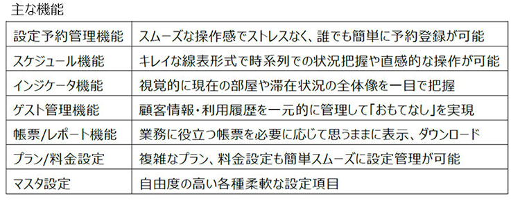 宿泊管理システム『innto』は、PMSとも呼ばれ、宿泊施設の予約や販売価格、残室数、料金といった客室に関する情報を一元管理できるシステムです。宿泊客のチェックイン、チェックアウト、精算などのフロント業務を支え、部屋の滞在や空室の状況把握、いつどれくらい予約が入っているかなどの予約管理をすることができます。さらに顧客管理や売上管理、宿泊、予約のデータ分析など、集積されたデータを生かすことで、スムーズな顧客対応や販売戦略策定に役立てることができるものです。