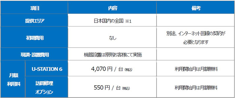 ※1 『U-STATION 6』の現調・設置は東日本エリアのみでの提供となります。