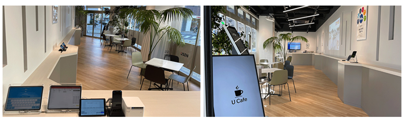 店舗の業務効率化を実現するPOSレジ・オーダー・決済サービス「Uレジ」「Uペイ」シリーズや配膳ロボット、AIを活用したBGMサービス・来店客分析などで店舗経営をスマート化する「USEN IoT PLATFORM」など、カフェ店舗を再現した環境下で店舗運営に必要なDXをトータルサポートするソリューション群を体験することができます。