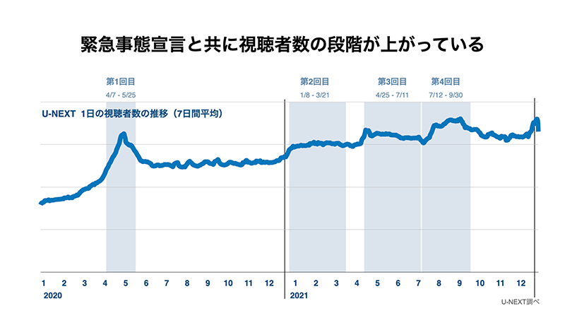 在宅時間の増加とともに視聴時間が増加。U-NEXTの