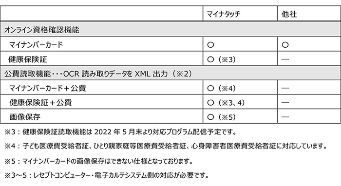 ※2:健康保険証によるオンライン資格確認支援機能は、オンライン資格確認に必要な項目を健康保険証の券面からOCR機能で