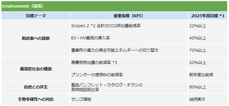 このたび、各マテリアリティに沿った重要指標(KPI)を策定し、2025年度までの目標を掲げたことをお知らせします。