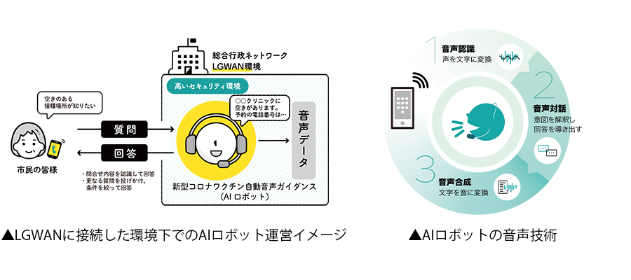 AIロボットにより市民サービスの充実を図るとともに、「新型コロナウイルスワクチン接種コールセンター」の負荷を軽減させます。