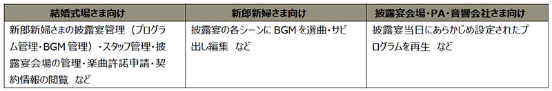 「披露宴当日のBGM演出・再生までDX化を実現!新郎新婦さま、社内スタッフどちらにとっても有益で便利なサービスパッケージ。」