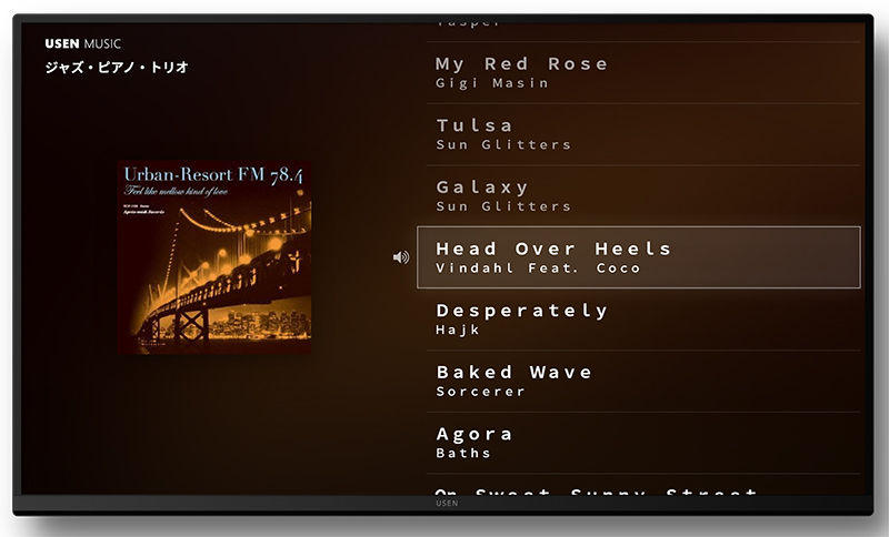 この『USEN MUSIC Entertainment』は、映像とUSENの多彩な音楽を組み合わせることによって、店内の雰囲気や季節感が自然と盛り上がるように機能設計されています。一方で映像と音楽が常にリンクしているわけではなく、別のものをそれぞれ独立して流せる仕組みがあることにも驚きました。お店の演出の幅が広がると思います。