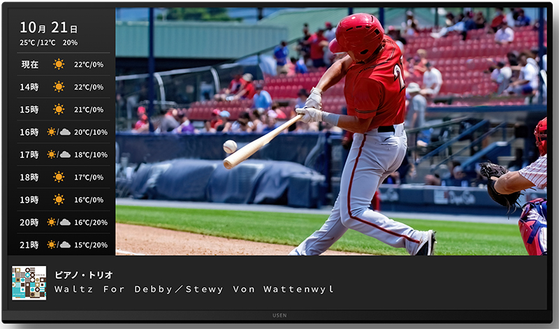 当社は、これまでBGM事業において、AI BGM・店内アナウンス・楽曲単位で選曲できる機能など、店舗の空間演出ソリューションとして改善を重ねてきましたが、今後は聴覚に留まらず“視覚”も加えた『USEN MUSIC Entertainment』によって、より一層店舗の演出のクオリティを高め、店舗運営に必要不可欠なサービスとして総合的に提供することで、店舗における DX 化を促進してまいります。
