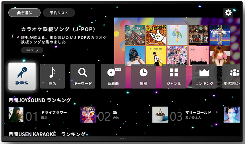 JOYSOUNDカラオケアプリをスマートテレビに搭載しています。周辺機器の「専用アンプ」「スピーカー」「選曲用リモコンタブレット」「ワイヤレスマイク」もご用意しています。