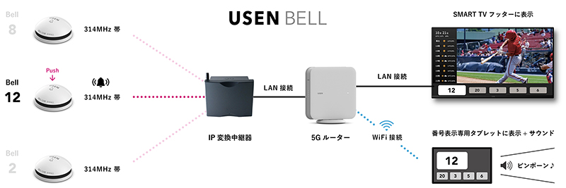 プッシュ時の摩擦を利用して蓄電する呼び出しベルです。電池交換不要で、抗菌・防水加工済みです。100万回のプッシュテストをクリアした高い耐久性を備え、処理速度0.003秒で同時呼び出しにも対応し、テレビモニターに呼び出し番号を表示されます。