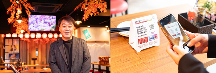 飲食店はここ数年厳しい状況であり、お客様に「また来たい」と思っていただくために、料理だけでなく空間の居心地や盛り上がりをどう作っていけばよいかずっと考えていました。そんななかで、音と映像を組み合わせて空間演出できる『USEN MUSIC Entertainment』の登場は、ひとつ武器が増えたような気持ちです。