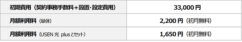 * USEN光 Plusとセットの場合、当サービスの違約金は発生しません。
