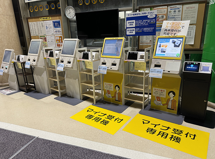 年間来院数19,662人※7と多くの患者様が来院するため、受付窓口の混雑緩和を目的に、これまで『APS-3300』7台、『Sma-pa マイナタッチ』22台を導入しています。2022年2月より「再来受付機にてマイナンバーカードを診察券として利用した場合の効果」の検証を目的に、本連携の実証実験を行い、マイナ受付専用再来受付機(『APS-3300』と『Sma-pa マイナタッチ』連携機)1台を導入しました。