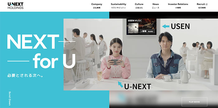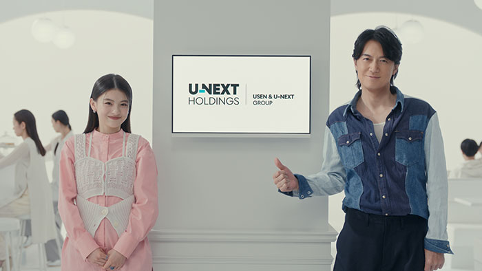 新CMでは、「エンターテインメントとテクノロジーで、未来をもっと新しく。」という言葉で、これまで当社グループが大事にしてきた世界観と、“あなたと世の中全ての人々の未来をより良くしていきたい”という想いを込めた新コーポレートスローガン「NEXT for U」を表現しました。「U-NEXT HOLDINGS」という新しい社名と、“USENとU-NEXTが同じグループであること”を多くのみなさまにお伝えする映像になっています。