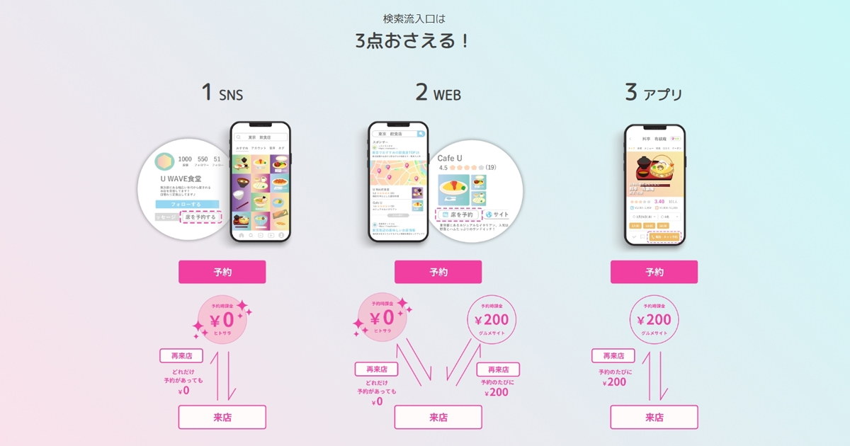 近年、顧客の飲食店検索方法はグルメサイトにとどまらず非常に多様化しています。こうした傾向に対応し、飲食店の集客強化を総合的に支援する目的で『U Wave』の新たなサービスを開始しました。