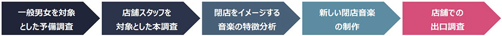 閉店時間であることをお客様にお知らせしますが、強制的であるという印象を与えず、店舗への満足度を損なわない、さらには、再び来店したいと思ってもらえるような音楽はないか、といった問題意識が出発点になっています。いくつかの調査と分析を経て、狙い通りの曲に仕上がりました。今後は、出来上がった曲を実際の店舗で流すことにより、閉店時におけるお客様の行動や、その後の来店にどのような変化が生じるのかを追跡していきたいと思います。