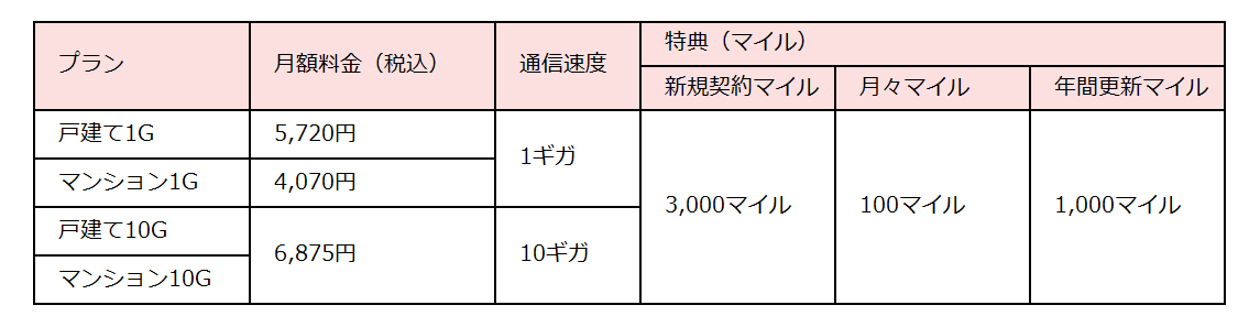 JALマイレージバンク会員向け家庭用インターネットサービス