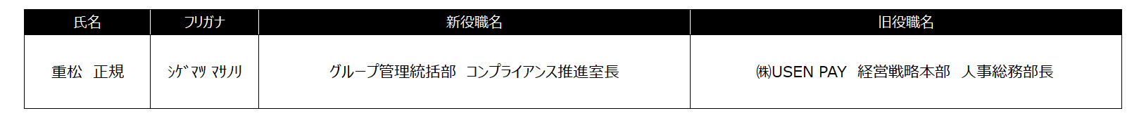 株式会社U-NEXT HOLDINGS(本社:東京都品川区、代表取締役社長CEO:宇野 康秀、以下、当社)は、3月1日付における、当社とグループ会社である株式会社USENの人事を決定しましたので、下記のとおりお知らせします。