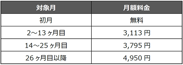 * 「にねん割」とは利用開始日の属する月の翌月から25ヶ月目まで、月額基本料から毎月1,155円(税込)を割引くものです。
