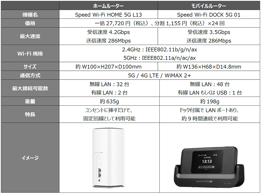 データ容量の上限無く使い放題かつ、端末が届いた日からすぐに通信が利用できる個人向けワイヤレスホームルーターサービスです。固定回線(光回線)のような開通工事やインターネット接続の設定が必要なく、コンセントにさすだけで高速通信をご利用いただけます。自宅利用に適したホームルータータイプに加え、手軽に持ち運びが可能なモバイルルータータイプもご用意しており、ライフスタイルに合わせて端末をお選びいただけます。
